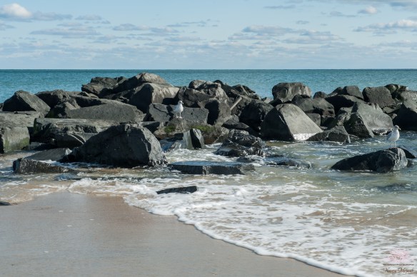 What I was looking for was there. That beautiful ocean – shades of blue and green – was there with the rhythm of the waves gently rolling over the sand. This day, the water was so calm. Everything was so quiet. The sky had so many shades of blue – it was periwinkle in some areas. The clouds were fluffy and white with shades of pink. The light on the beach was beautiful. Even the seagulls were quiet, standing strong on the ocean’s edge.